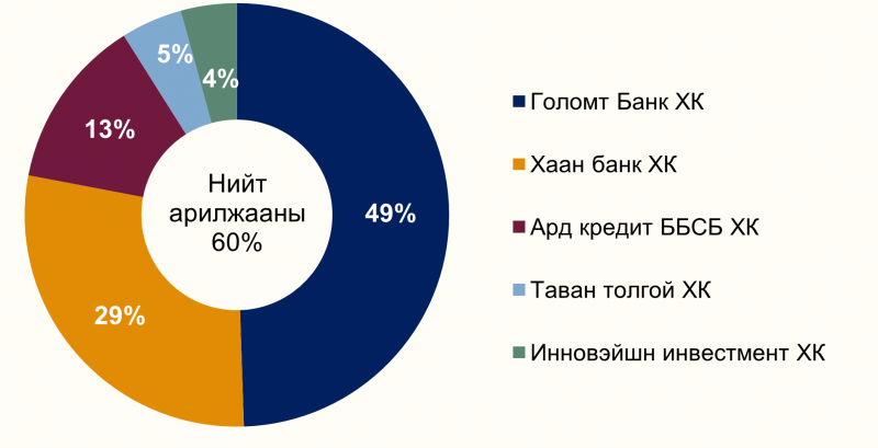 Монголын хөрөнгийн бирж дээр долоо хоногийн хугацаанд нийт 9.1 тэрбум төгрөгийн үнийн дүн бүхий 14.3 сая ширхэг үнэт цаас арилжаалагджээ. Үүнээс Голомт Банк ХК, Хаан банк ХК, Ард кредит ББСБ ХК, Таван толгой ХК болон Инновэйшн инвестмент ХК арилжааны үнийн дүнгээр тэргүүлсэн байна. Тус хугацаанд багцын 3 удаагийн арилжаа зохион зохион байгуулагджээ. Тодруулбал: