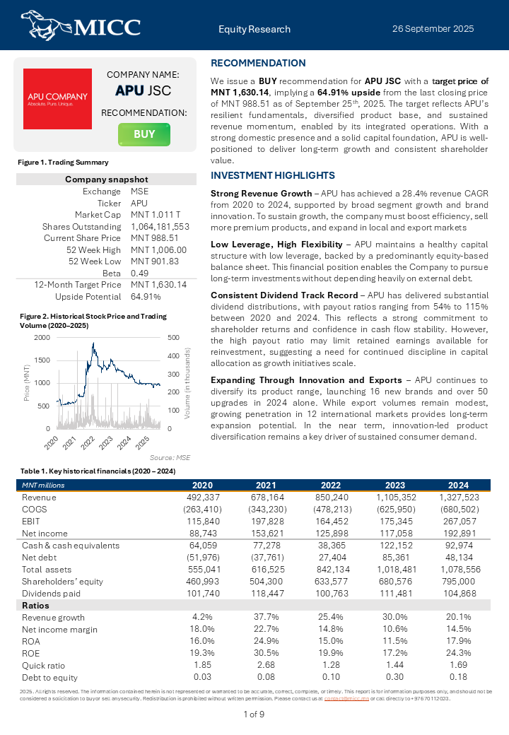 Equity Research: APU JSC (MSE: APU)